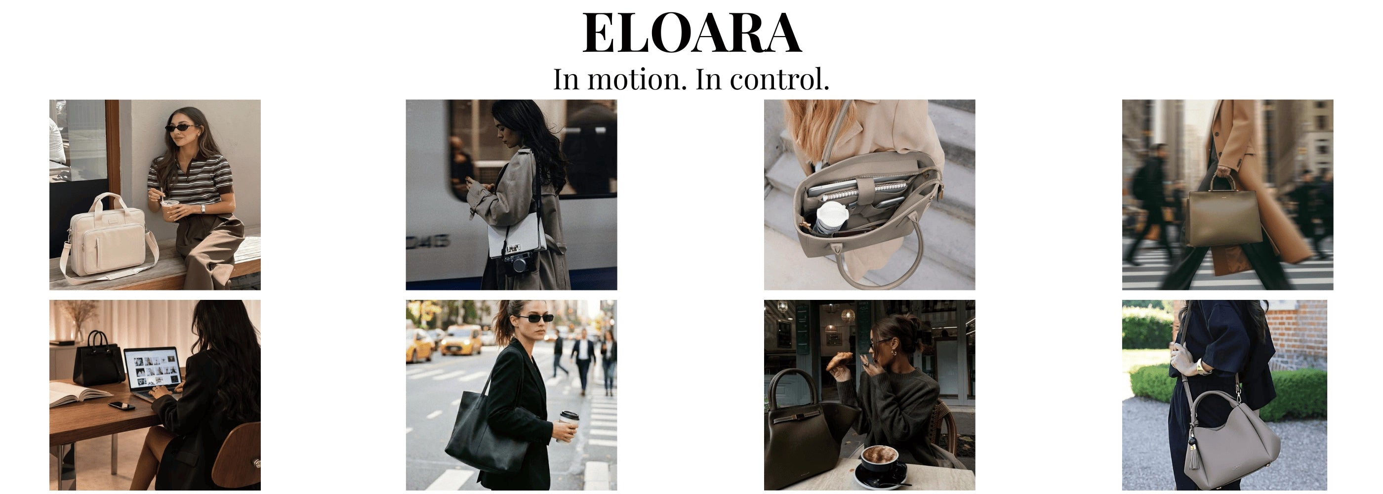 That's exactly what ELOARA was built for. Our bags feature thoughtfully designed compartments for your laptop, essentials, and daily items — all organized and accessible. One bag. Everything in place. No compromise on elegance.
